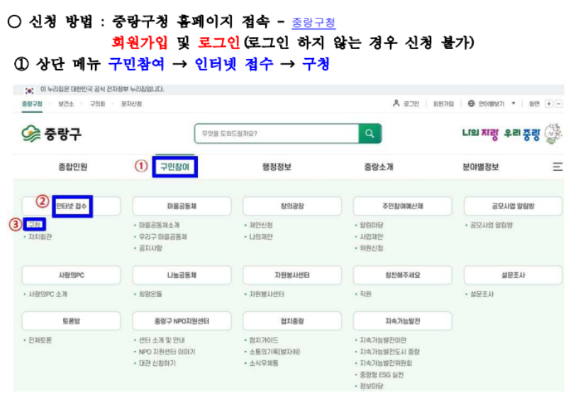 ■ 온라인 신청 (중랑구청 홈페이지)
